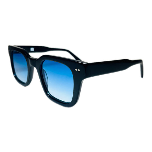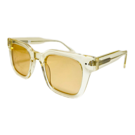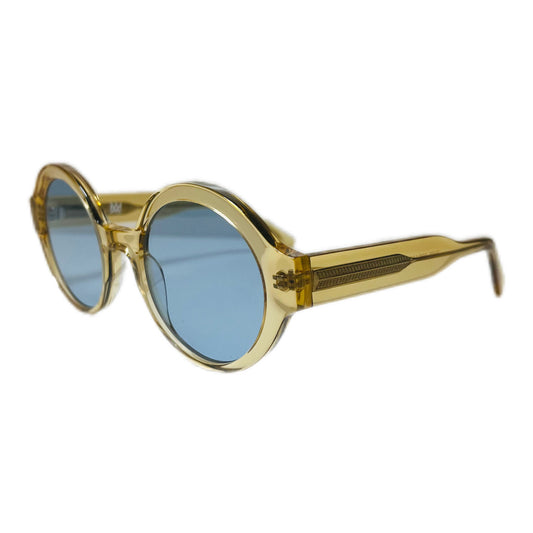 The 4AM FUKUOKA 12:00 series sunglasses feature a vibrant yellow frame paired with blue lenses, making them the focal point in any crowd.